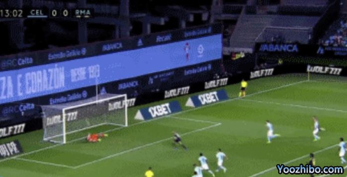 360直播吧08月21日讯 皇马vs塞尔塔第14分钟,阿拉巴造点,本泽马操刀主罚将球打进!