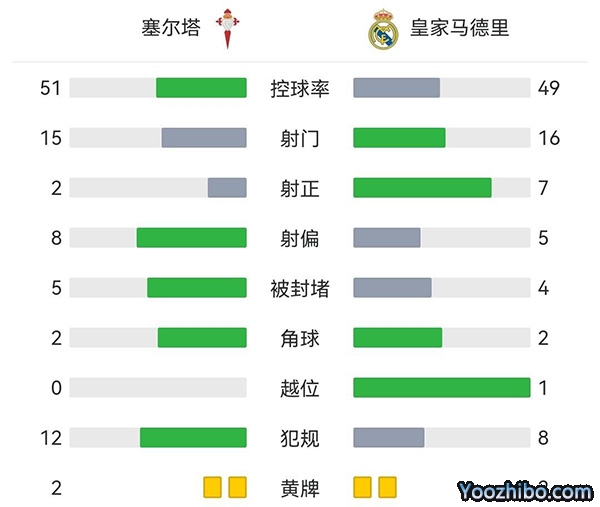 第22分钟,塞尔塔获得点球!右路马略起球传中帕先西亚禁区头球打在米利唐手上,裁判果断吹罚点球,随后阿斯帕斯主罚点球破门,塞尔塔1-1皇马。