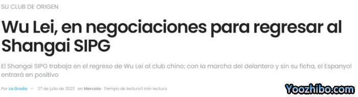 360直播吧07月28日讯 据《足球报》和西班牙媒体LaGrada报道,武磊将在今夏返回上海海港。