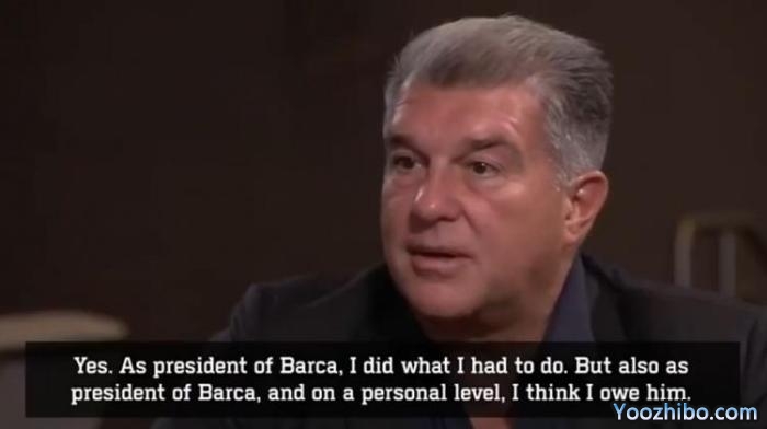 “作为巴萨俱乐部主席,我做了自己必须做的事,但在个人层面,是的,我认为我亏欠了梅西。”