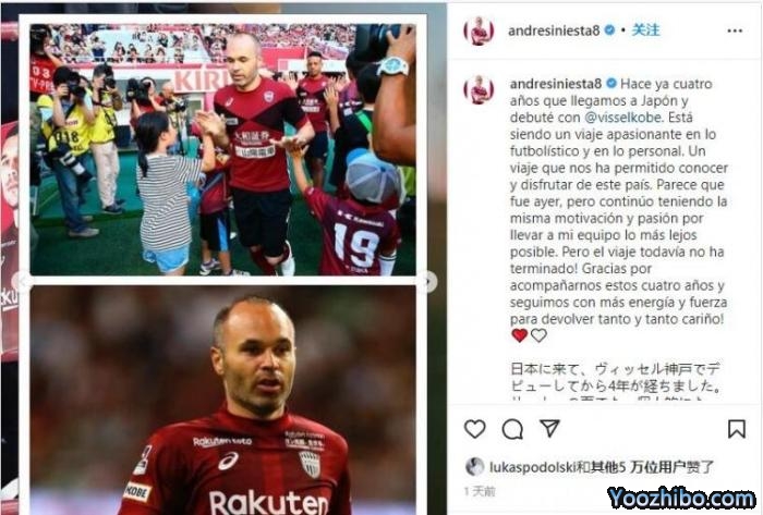 360直播吧07月24日讯 今日,西班牙球星伊涅斯塔更新了个人社媒,纪念自己上演神户胜利船首秀的4周年纪念日。