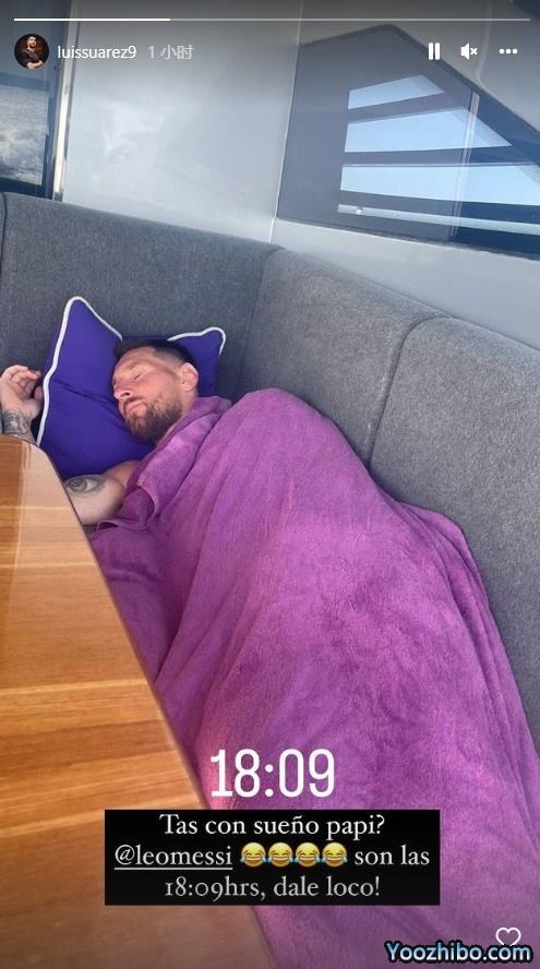 360直播吧06月27日讯 苏亚雷斯一家现在正在和梅西一家一起度假,苏亚雷斯今天在Instagram上晒出一张梅西熟睡的照片,并对他进行了调侃。