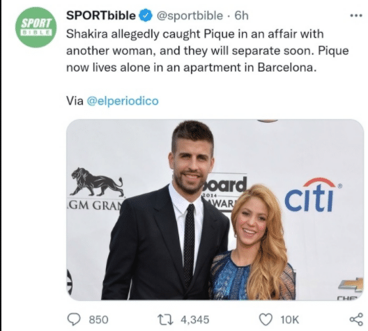 12年间,两人从未传出任何绯闻,也没有任何不和的消息。在公共场合,两人也一直以甜蜜的形象出现。但如今,皮克在自己35岁的年纪出轨,让45岁的夏奇拉无法接受,两人目前已经分居,并且极有可能以离婚告终。