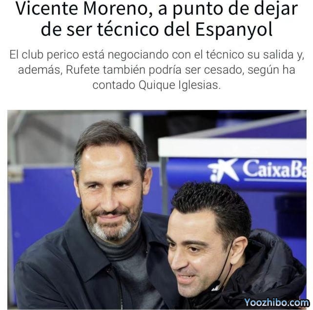 360直播吧05月13日讯 ,来自《塞尔电台》、《科贝电台》等多家西班牙媒体的消息,西班牙人队主帅莫雷诺即将被解雇。西班牙人将在本周六赛前,官宣这一决定。本月15日0点30分,西班牙人将在西甲第37轮坐镇主场迎战瓦伦西亚,这将会是莫雷诺在西班牙人队最后1个主场比赛。
