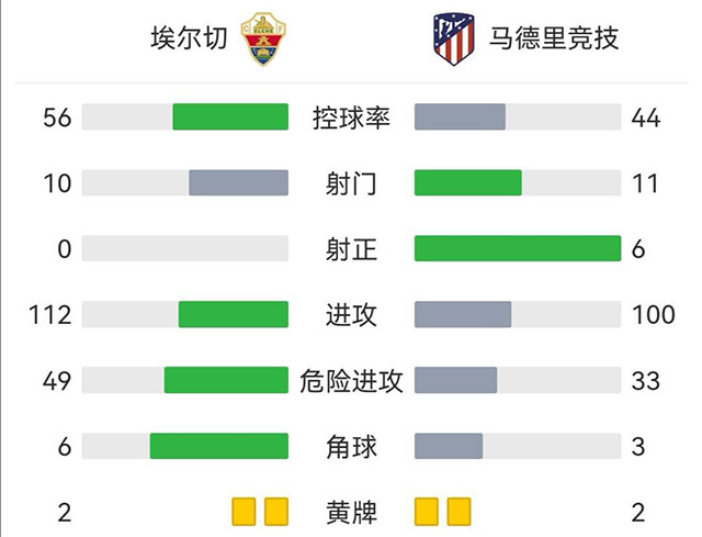 全场比赛结束,埃尔切0-2马德里竞技!