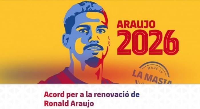 360直播吧04月27日讯 消息,巴塞罗那官方宣布和乌拉圭后卫罗纳德-阿劳霍续约至2026年6月30日。