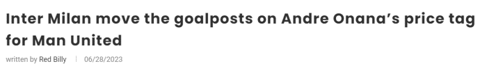 其报道还否认国米将与曼联在周五会晤。值得一提的是,目前关于曼联可能在未来两天签下奥纳纳的传闻,多数来自意媒,英媒保持沉默,甚至称曼联不愿意为其支付超过3000万英镑(3500万欧元)的转会费。