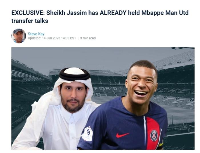 360直播吧06月15日,来自知名转会记者Steve Kay独家爆料,竞标曼联的卡塔尔投资方贾西姆,已与姆巴佩展开谈判,希望收购曼联成功后将他带到老特拉福德,作为自己入主曼联后的首笔签约。