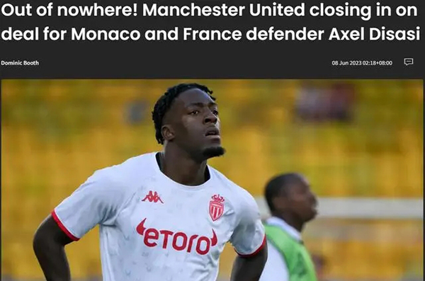 360直播吧讯06月08日据法国媒体《队报》报道,曼联与摩纳哥中后卫阿克塞尔-迪萨西的转会已经接近尾声。法国的多家媒体声称,曼联对法国俱乐部约4000万欧元的要价没有异议。而L'Équipe报道,尽管交易被描述为接近完成,但两家俱乐部实际上还没有开始正式谈判。