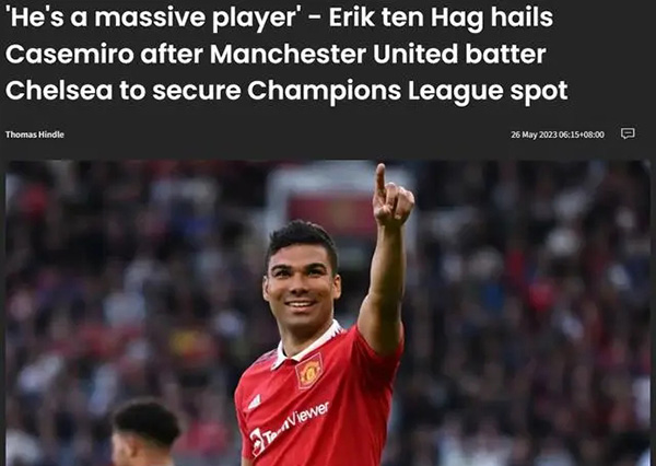360直播吧05月26日凌晨3:00,2022-23赛季英超联赛第32轮补赛,曼联4-1战胜切尔西后,曼联主教练腾哈格对卡塞米罗大加赞赏。
