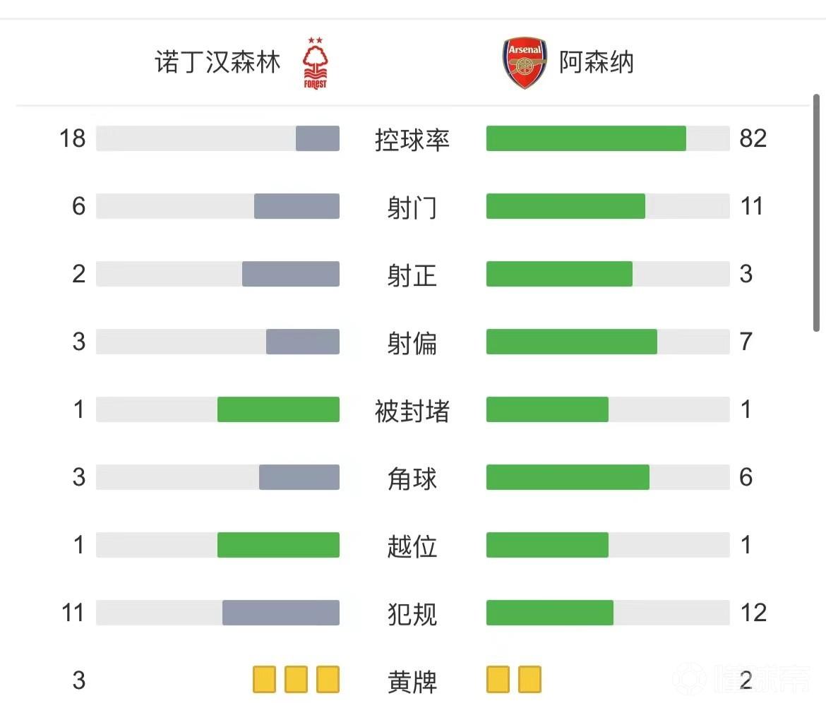 阿森纳0-1诺丁汉森林 送曼城提前三轮加冕冠军