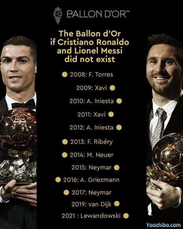 360直播吧10月02日讯 消息,金球奖官方晒出了如果梅西C罗不参与评选的金球奖得主,哈维和内马尔两次获奖。