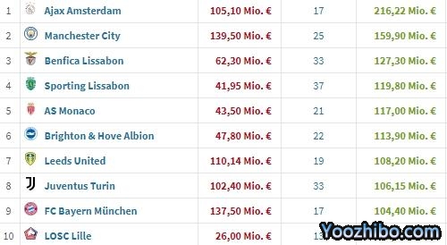 360直播吧讯 今夏阿贾克斯将安东尼和利桑德罗-马丁内斯高价卖给了曼联,他们通过出售球员获得2.16亿欧元,位居首位。