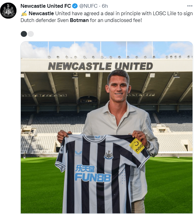 米兰此前一直在追求博特曼,但纽卡最终击败了红黑军团,完成了他们今夏的第三笔签约。