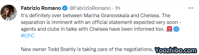 360直播吧06月21日讯 据罗马诺报道,切尔西很快就会官宣总监玛丽娜-格拉诺夫斯卡娅离任的消息,俱乐部新老板陶德-伯利正在负责续约和转会谈判。