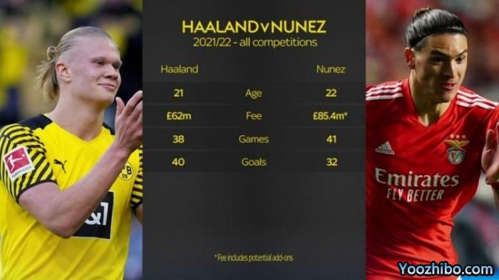 哈兰德今夏6200万英镑加盟曼城,努涅斯8540万英镑加盟利物浦,引发足坛的广泛关注。