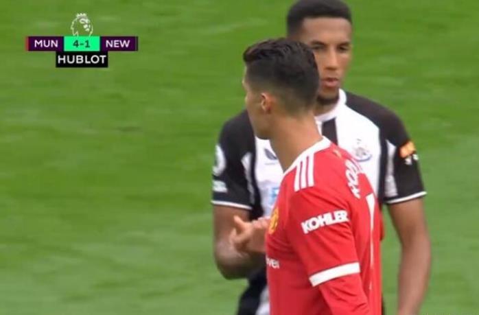 而在比赛中,纽卡斯尔的多名球员也上演了找C罗要球衣的情况,比如说当林加德进球,比赛还没有结束的时候,纽卡斯尔的队长拉塞尔斯就找到了C罗,希望可以和C罗交换球衣,个人独中两队的C罗显然心情大好,他同意了要求,不过C罗指了指场外,示意等比赛结束后,完成交换。