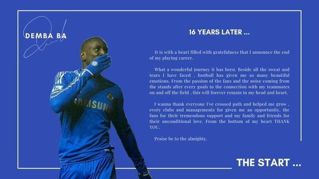 今天,登巴-巴发文宣布挂靴退役,并感谢了所有俱乐部、支持者和队友的帮助与支持。