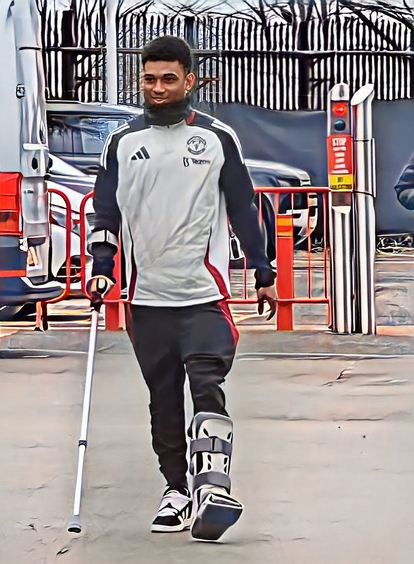 360直播吧讯曼联上周的足总杯比赛中,因伤缺阵的阿马德·迪亚洛拄着拐杖、穿着防护靴出现在老特拉福德助威。他的现身未能鼓励队友晋级,球队输掉点球战被淘汰出局。然而,主帅鲁本·阿莫林随后透露,这位22岁边锋可能在赛季结束前伤愈复出,原本报销的赛季「死而复生」。