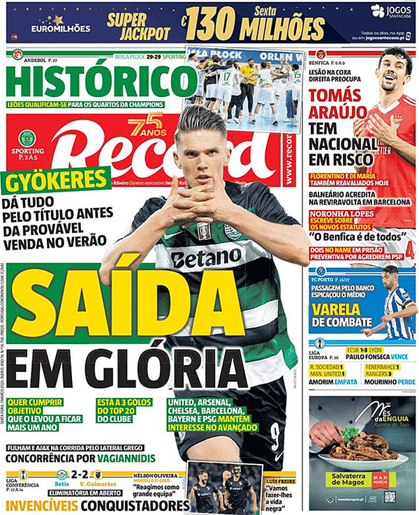 哲凯赖什正在用自己的进球带领本队前进,他39场打入37球,其中23场联赛进了25球。周一,他梅开二度,让葡体3-1战胜埃斯托里尔普拉亚,结束了此前的三连平。
